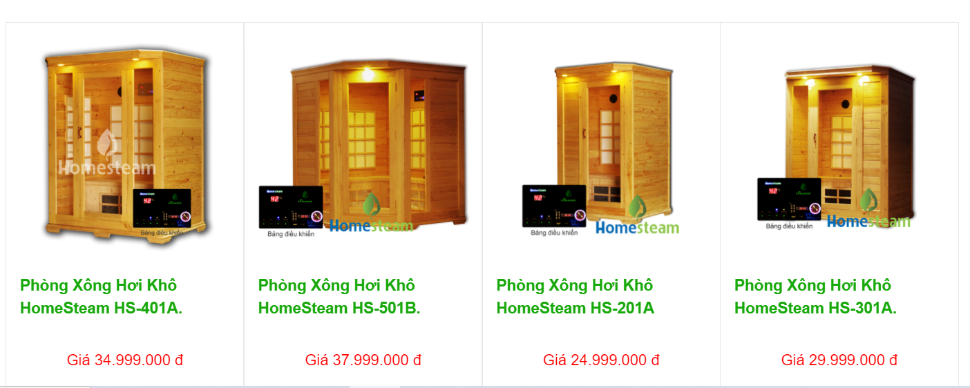 Phòng xông hơi khô Homesteam với nhiều kích thước, mẫu mã khác nhau